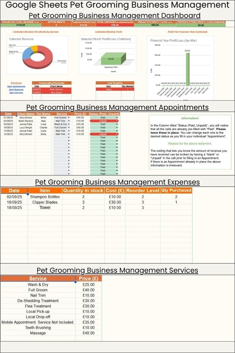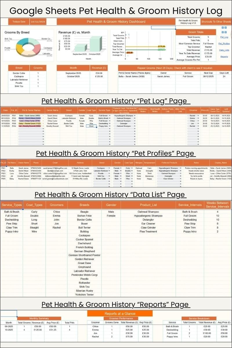 Download our Free Pet Grooming Log spreadsheet. A simple spreadsheet to record grooming sessions, notes, and upcoming grooming dates, ideal for everyday use.